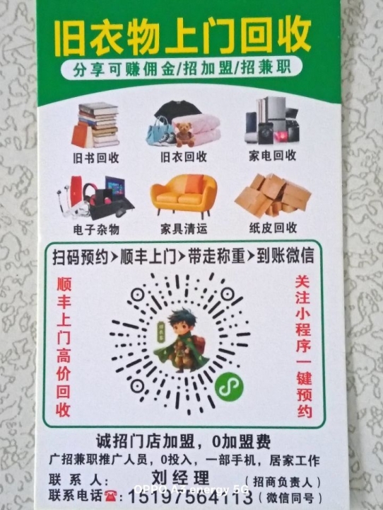 为环保助力,本公司上门回收旧衣...